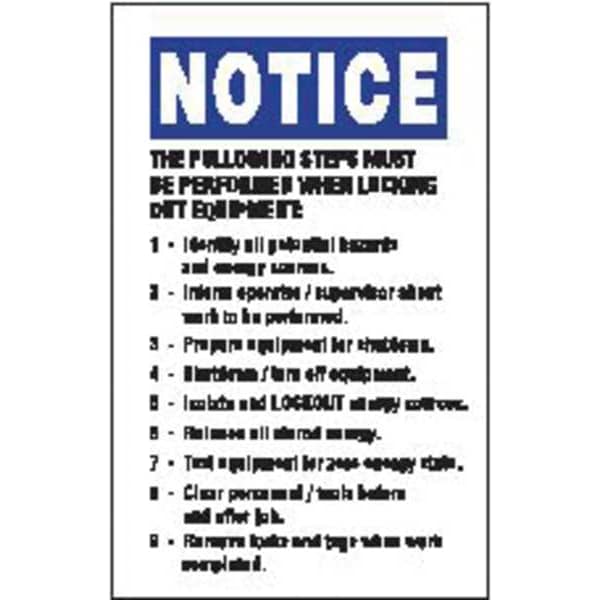 Lockout Label, Number of Printed Sides 1, English, Sign Legend THE FOLLOWING STEPS MUST BE PERFORMED WHEN LOCKING OUT EQUIPMENT..., Sign Legend Style Text, Package Quantity 5