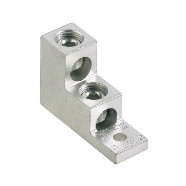 One-hole, aluminum, vertical two barrel lug, dual barrel, type LAM2SA, #6 AWG - 300 kcmil, 5/16 (7.9mm) stud hole.