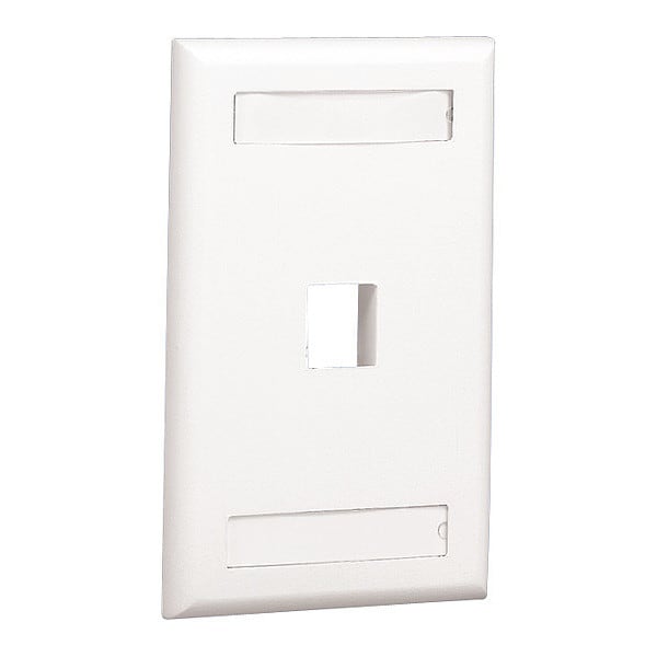 NetKey single gang, flush mount vertical faceplate , accepts one keystone module, includes label and label cover. Electric Ivory.