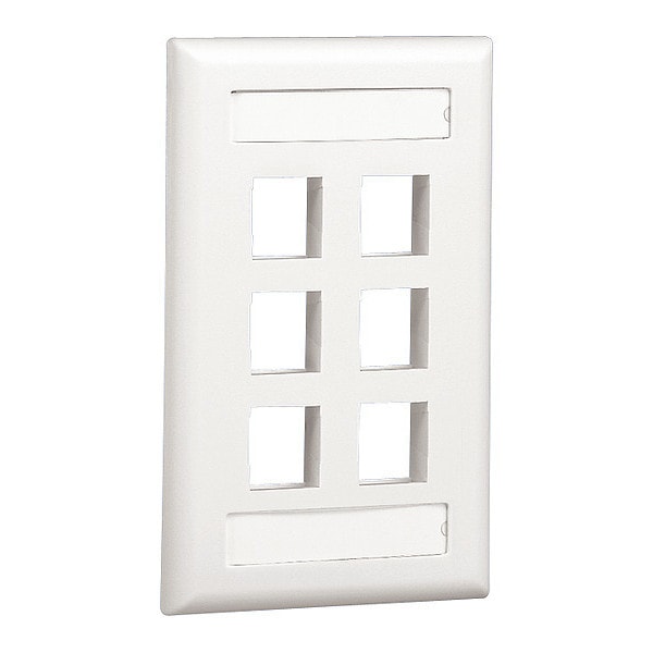 NetKey single gang, flush mount vertical faceplate , accepts six keystone module, includes label and label cover. Off White