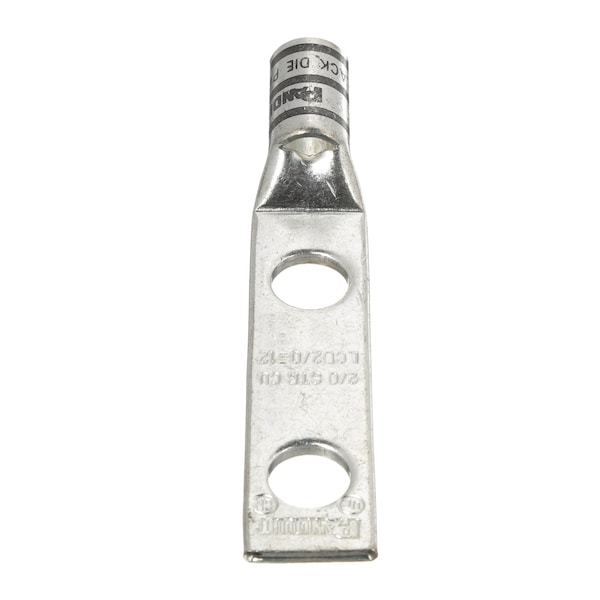 Copper Compression Lug, 2 Hole, 2/0 AWG, 1/2 (12.7mm) Stud, 1.75 (44.4mm) Hole Spacing