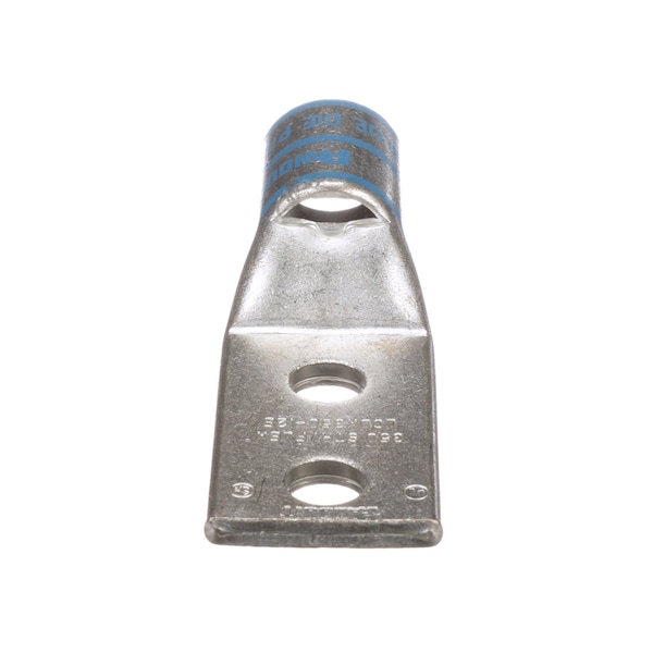 Two-hole, flex lug, 350 kcmil cable, 1/2 stud hole, 1.25 hole spacing.