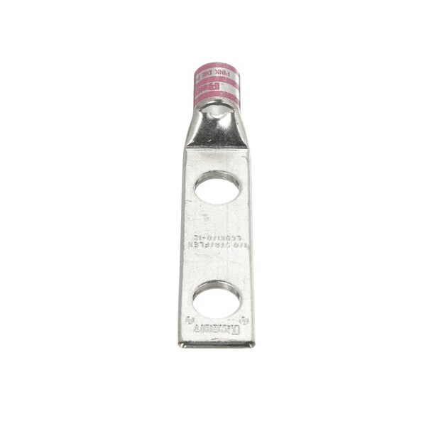 Two-hole, flex lug, 1/0 AWG wire, 1/2 stud hole, 1.75 hole spacing.