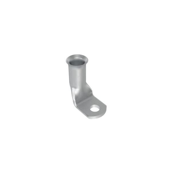 The A4/0-12RF-C Copper Compression Battery Cable Lug, 4/0 AWG, 1/2" Stud with a 90 degree bend are tin plated to meet ASTM Class C specification for corrosion resistance. Manufactured with a standard barrel without an inspection window preventing contaminents from entering. Flared barrel entry for ease of inserting flex conductors. High pullout strength for heavy duty applications and military pullout strength requirements when using Panduit recommended tooling.