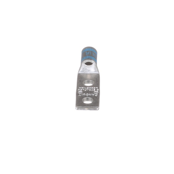 Two-hole, flex lug, #6 AWG wire, #10 stud hole, .63 hole spacing.