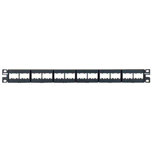 Patch Panel, Features Front Access, Material Steel, Number of Ports 24, Panel Shape Flat, Panel Type Modular, Rack Units 1, Overall Depth 7/8 in, Overall Height 1 3/4 in, Overall Width 19 in, Standards RoHS Compliant