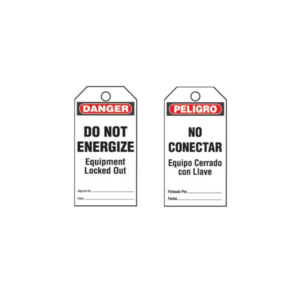 Plastic Tag, 'Danger Do Not Energize ....', 25 tags & ties/pk, RB/WH