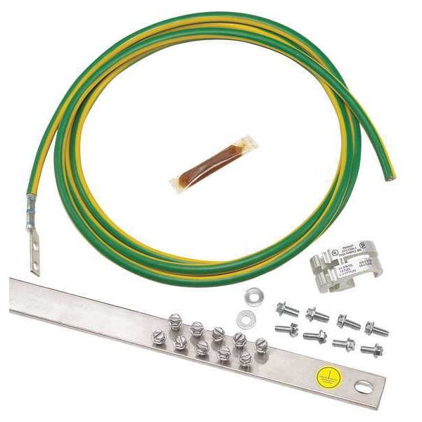 Grounding Strip System, Material Copper, For Use With Telecom/Data Center, Grounding Bar Holes and Size (20) #12-24, Grounding Bar Length 19 in, Grounding Bar Thickness 3/16 in, Grounding Bar Width 1 in, Ground Wire Included 96 in 6 AWG