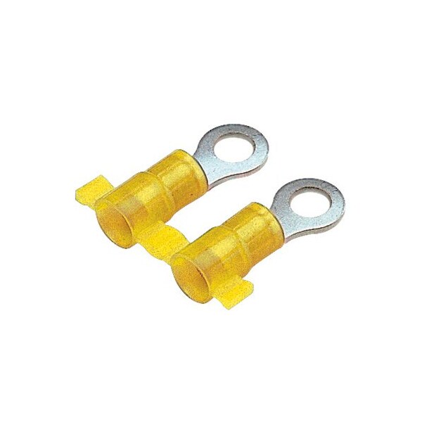 Ring Terminal, #8 Stud Size, 10 AWG, 600 V, Nylon Insulated, Yellow, 2000 PK