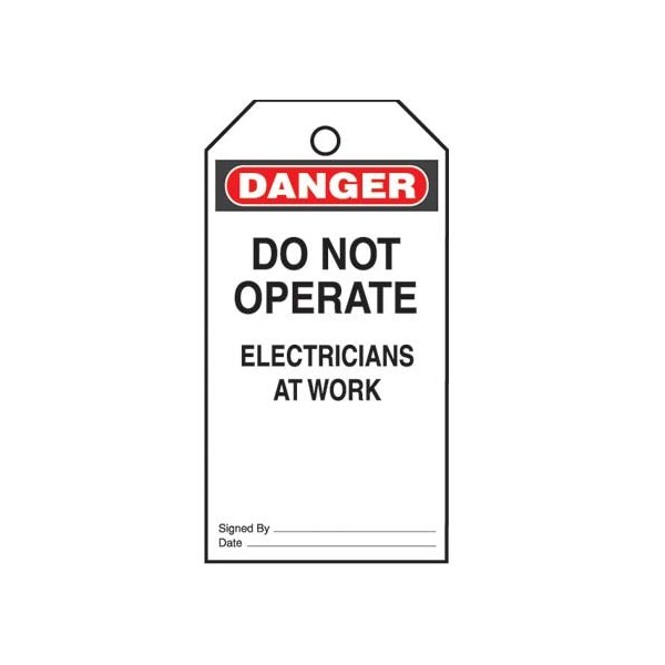 Plastic Tag, 'Danger Do Not Operate Electricians ...', 25 tags and ties/pk, RB/WH