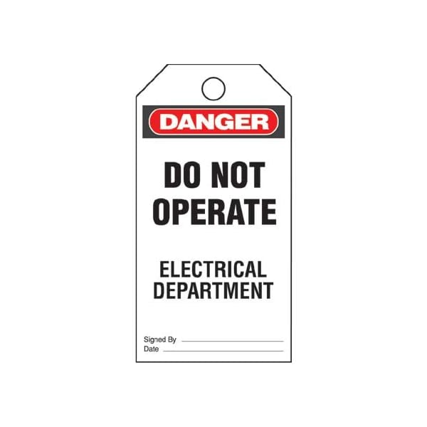 Plastic Tag, 'Danger Do Not Operate Electrical ..', 5 tags and ties/pk, RB/WH