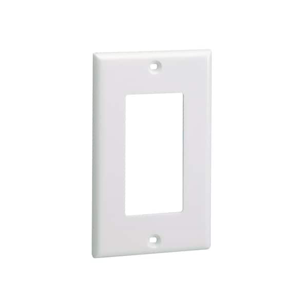 Screw-on single gang rectangular faceplate. Covers one NEMA standard rectangular electrical outlet or one standard rectangular communication module frame, White.