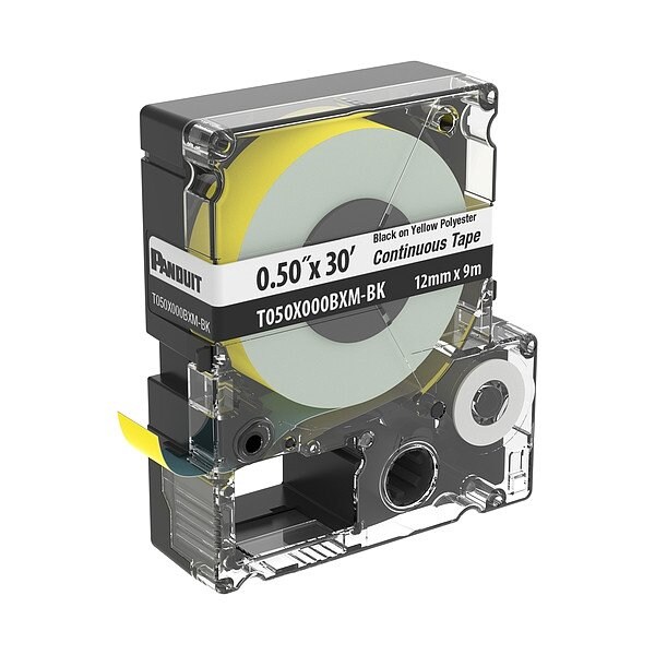The T050X000BXM-BK Continuous Tape Cassette includes both label material and ribbon for easy changeover. Print custom pipe markers, voltage markers, signs, bin markers, and network identification labels on demand. For flat label applications only. For use with the MP300, MP200, MP100, and MP75 print,