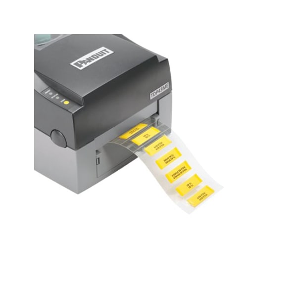 The thermal transfer military grade heat-shrink label in white is 2-sided with a 1/4" (6.35mm) diameter and made of 3:1 flattened polyolefin. It is 1" (25.4mm) wide and .44" (11.2mm) high. The heat-shrink sleeve is designed to provide a clear, reliable, and durable way to identify wires and cables. The sleeve has 2 label(s) per row and 1000 labels per roll. Heat-shrink labels are mounted on a plastic carrier and offer crisp, clear legends.