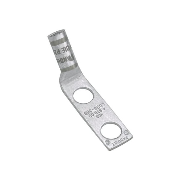 Copper Compression Lug, 2 Hole, 4/0 AWG, 3/8 (9.5mm) Stud, 45° Bent