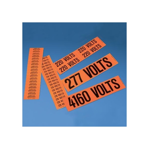 Voltage Marker, Vinyl, '115 VOLTS, 4.50"Wx1.13"H, 4/card, 5 cards/pk, BL/OR