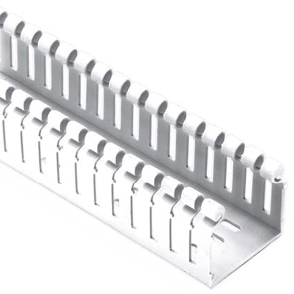 Wiring Duct for Hinged Covers, Wall Type Narrow Slot, Width 1 3/4 in, Height 2 in, Slot Width 0.2 in, Material PVC, Color White, Mounting Style Screw Mount, Length 72 in, Slot Height 1.6 in, Slot-to-Slot Centerline 1/2 in, Standards CE Compliant, CSA Certified, RoHS, UL 94 Flammability Rating of V-0, UL Listed, Compatible Cover Style Hinged, Nominal Height 2 in, Nominal Width 1 1/2 in
