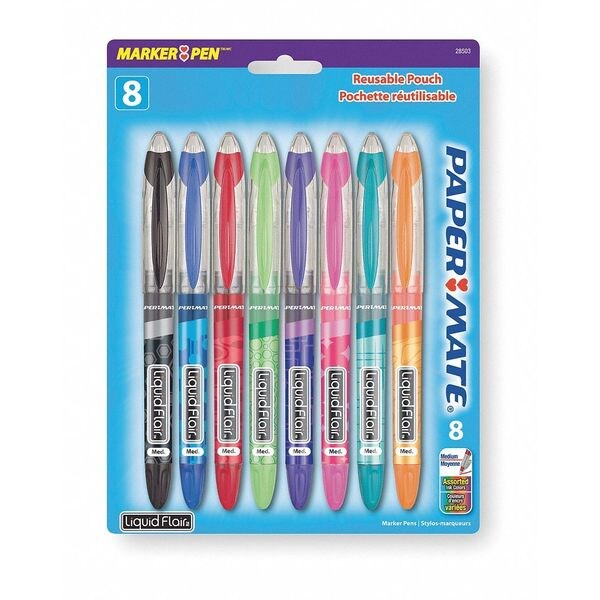 Porous Point Felt Tip Pen Set, Barrel Material Plastic, Barrel Color Black, Blue, Red, Green, Purple, Orange, Turquoise, Pink, Includes One Each Color, Package Quantity 8