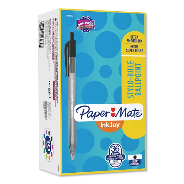 Paper MateĀ® InkJoy 100 RT Retractable Ballpoint Pen, Medium 1 mm, Black Ink, Gray Barrel, 36/Pack