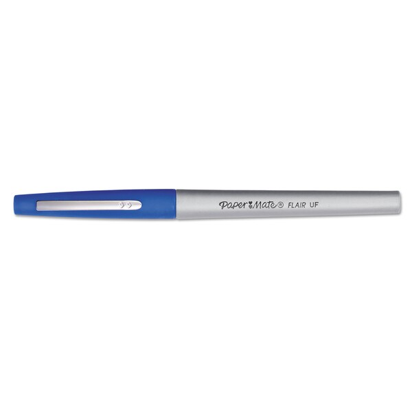 Paper MateĀ® Flair Felt Tip Stick Porous Point Marker Pen, 0.4mm, Blue Ink/Barrel, Dozen