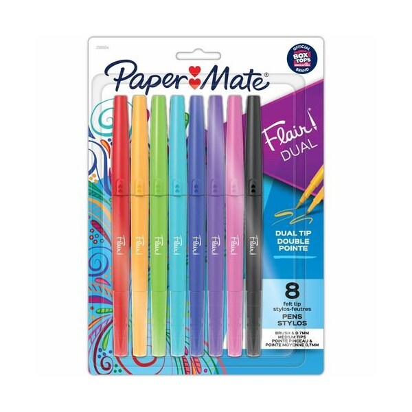 Paper Mate Pens,Flair,Dual-End,Brush/Medium Tip,8/PK,AST PEN,FLAIR,DUO,8CT,ASST