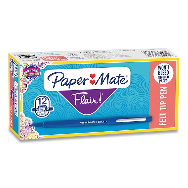 Point Guard Flair Felt Tip Porous Point Pen, Medium 0.7 mm, Blue, PK12