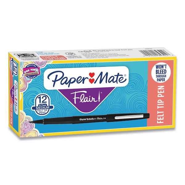 Add bright, vivid details to your writing and drawing with Paper Mate Flair Felt Tip Pens. Featuring a comfortable barrel grip and high-quality water-based inks, these pens are compatible with most surfaces and won’t bleed through paper. These pens feature point guards that prevent the tips from fraying and drying out to keep your pen fresh. Every stroke produces bold, clean lines that are perfect for drawing, editing documents and checking papers.