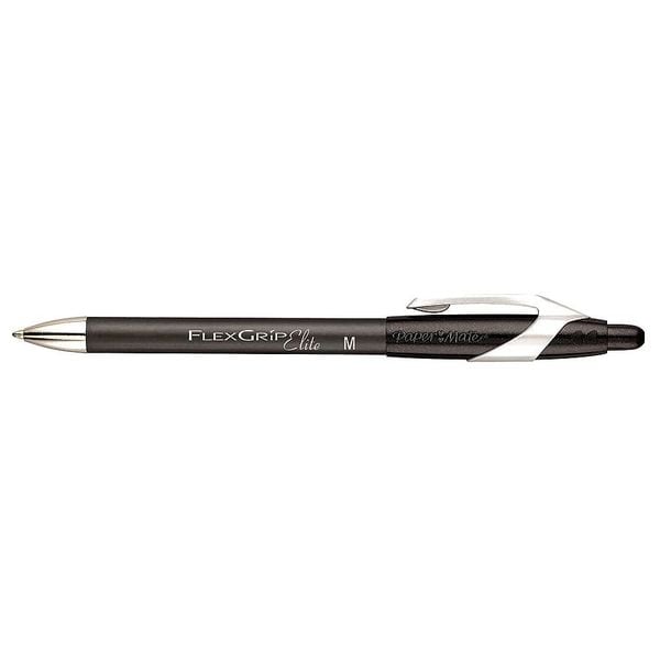 Pen, Pen Tip 1 mm, Barrel Material Plastic, Barrel Color Black, Pen Grip No Grip, Pen Cap Retractable, Includes Pen Cushion Cushion Not Included, Pen Ink Color Black, Series FlexGrip(R) Elite(TM), Features Point Guard, Includes Point Guard, Package Quantity 12