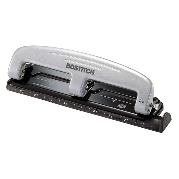 Here at Bostitch, we’re confident this silver 3-hole punch will impress. With its easy-to-squeeze design that requires a whopping 50% less effort, it also boasts an adjustable paper guide and integrated ruler for quick, precise measurements and hole placement.