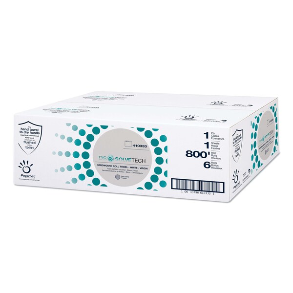 Papernet DissovleTech Hardwound Paper Towels, 1 Ply, Continuous Roll Sheets, 800 ft, White, 6 PK 410333