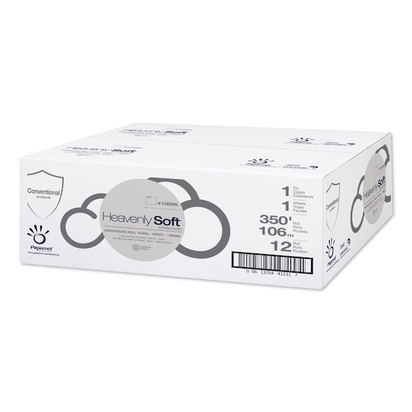 Heavenly Soft Hardwound Paper Towels, 1 Ply, Continuous Roll Sheets, 350 ft, White, 12 PK