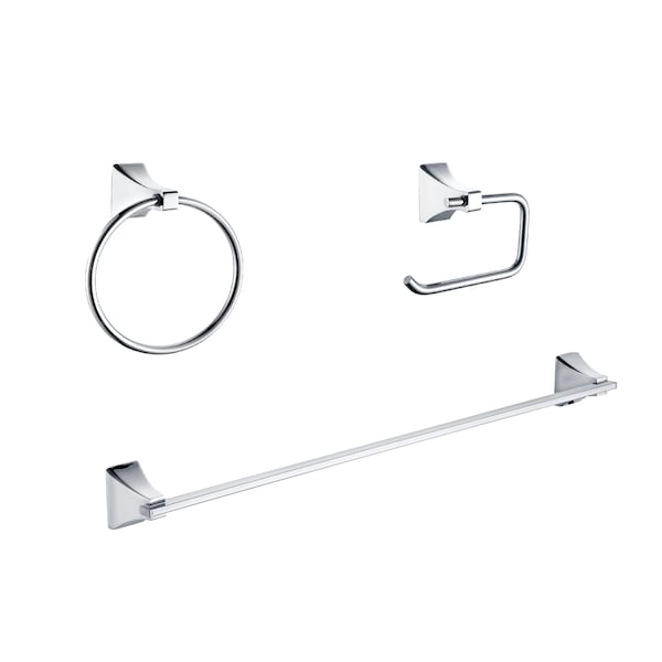 Shangri-La, 3pc Bath Set, Chrome, Towel Ring, 18" Bar, Paper Holder