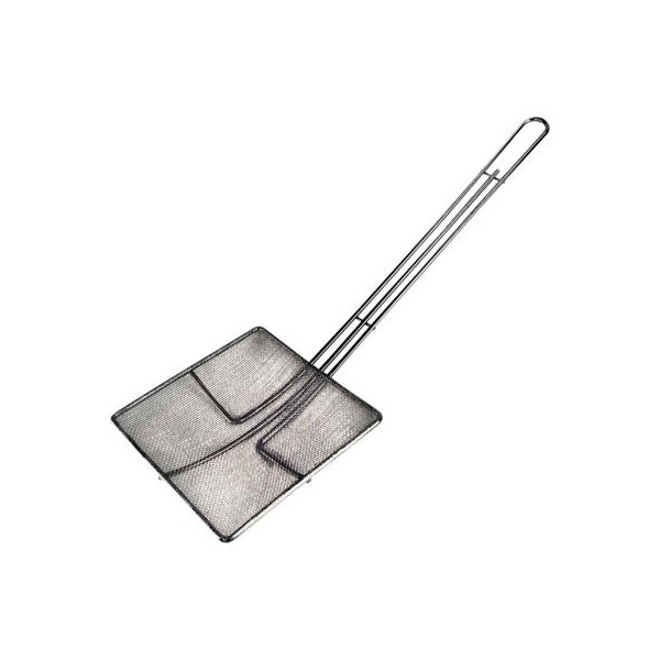 Paragon 4128, wire skimmer, square, fine fine mesh square skimmers with reinforced bottoms. One-piece handles are low-heat transferring. Scallop grip for ease of grasping food with a locking mechanism to conserve space.