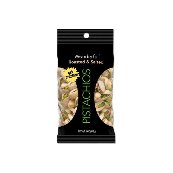 Paramount farms wonderful pistachios, roasted & salted, 1 oz pack, 12/box tear into a properly nutty, delicious snack. Low-calorie, low-fat and high-fiber nuts are a heart-healthy, all-natural cure for your hunger. With shellsconvenient single-serve packs. this product arrives to most customers in 2-3 business days.