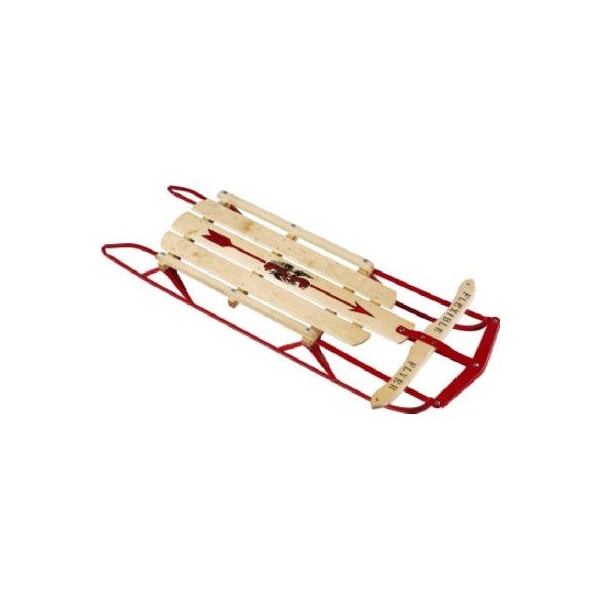 48, Flexible Flyer Sled, Highest Quality Wood Deck, Decorated Full Deck Of Kiln Dried Northern Hardwood, Floating Steering, Grooved Steel Runners With 4 Reinforced Knees