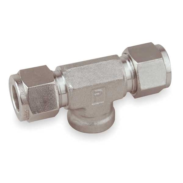 Compression Tee Fitting, Application Gas, Oil, Fitting Side A Connection Type Compression, Fitting Side B Connection Type Compression, Fitting Side C Connection Type FNPT, Fitting Material Stainless Steel, Fitting Side A Tube Outer Diameter 1/2 in, Fitting Side B Tube Outer Diameter 1/2 in, System of Measurement Imperial, Compatible Fitting Brands Parker A-LOK, Material Grade 316, Maximum Operating Pressure 6,700 psi, Maximum Operating Temperature 649 Degrees C, Overall Length 2 27/32 in