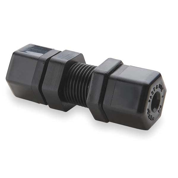 Compression Fitting Union, Application Air, Potable Water, Fitting Side A Connection Type Compression, Fitting Side B Connection Type Compression, Fitting Material Polypropylene, Fitting Side A Tube Outer Diameter 1/4 in, Fitting Side B Tube Outer Diameter 1/4 in, Maximum Operating Pressure 300 psi, Maximum Operating Temperature 212 Degrees F, Overall Length 2 3/16 in, Specific Fitting Shape Straight Bulkhead Union, Compatible Fitting Brands Parker Hannifin, Series Fast & Tite