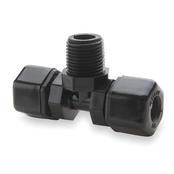 Compression Tee Fitting, Application Air, Potable Water, Fitting Side A Connection Type Compression, Fitting Side B Connection Type Compression, Fitting Side C Connection Type FNPT, Fitting Material Polypropylene, Fitting Side A Tube Outer Diameter 3/8 in, Fitting Side B Tube Outer Diameter 3/8 in, Fitting Side C Tube Outer Diameter 3/8 in, Thread Size A 1/4, Compatible Fitting Brands Parker, Material Grade Not Applicable, Maximum Operating Pressure 150 psi