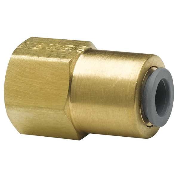 Flared Fitting Elbow, Fitting Material Brass, Flare Angle 45 Degrees , Application Air, Fitting Side A Connection Type Push-to-Connect, Fitting Side B Connection Type Push-to-Connect, Fitting Side A Tube Outer Diameter 1/4 in, Fitting Side B Tube Outer Diameter 1/4 in, Fitting Thread Size 7/16 In.-20, Hex Size 11/16 in, Maximum Operating Pressure 294 psi, Maximum Operating Temperature 176 Degrees F, Overall Length 1 in, Specific Fitting Shape Straight Adapter