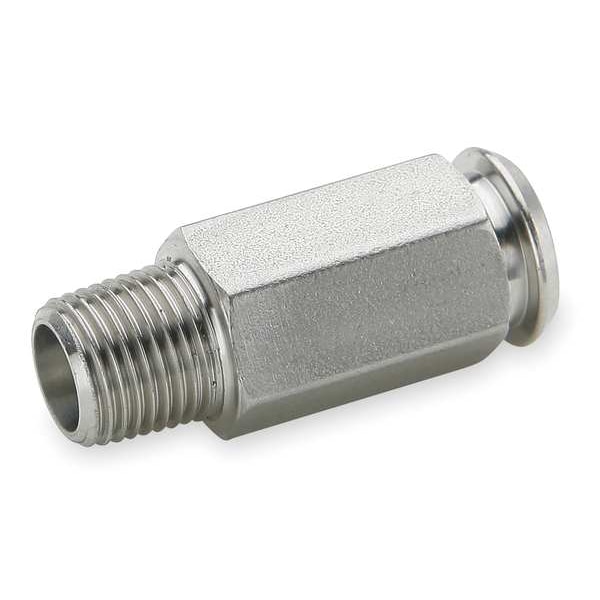 Inline Coupler, Application Dental, Pneumatics, Product Waste Line, Fitting Side A Connection Type MNPT, Fitting Side B Connection Type Plug in Stem, Fitting Side B Tube Inner Diameter 1/4 in, Flow Control Type Flow-through, Fitting Side A Pipe Size 1/4 in, Fitting Material Stainless Steel, Overall Length 1 9/32 in, Specific Fitting Shape Straight Through Coupler, Material Grade 316, Fitting Side B Tube Outer Diameter 1/4 in, Compatible Tube Material Nylon, Polyethylene, Polypropylene, Vinyl