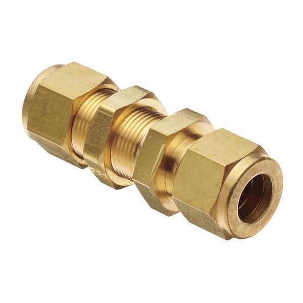 Compression Fitting Union, Application Compressed Natural Gas, Fuels, Gases, Hydrogen, Liquids, Oils, Petroleum Oil, Steam, Fitting Side A Connection Type Compression, Fitting Side B Connection Type Compression, Fitting Material Brass, Fitting Side A Tube Outer Diameter 1/8 in, Fitting Side B Tube Outer Diameter 1/8 in, Maximum Operating Pressure 10,900 psi, Maximum Operating Temperature 400 Degrees F, Overall Length 2 1/32 in, Specific Fitting Shape Straight Bulkhead Union