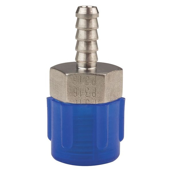 Barbed Fitting Adapter, Fitting Side A Connection Type Barbed, Fitting Side B Connection Type MNPT, Fitting Side B Pipe Size 1/8 in, Fitting Side A Tube Inner Diameter 1/8 in, Fitting Material Stainless Steel, Material Grade 316, Overall Length 13/32 in, Specific Fitting Shape Straight Adapter, Application Air, Natural Gas, Non-Potable Water, Potable Water, Propane, Steam, Maximum Operating Temperature 1,200 Degrees F, Standards ASTM 31.3, Hex Size 3/8 in