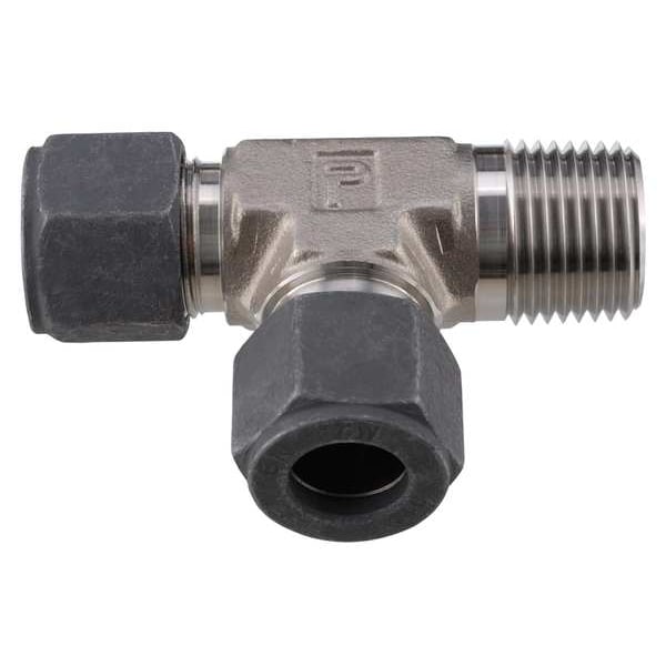 Compression Tee Fitting, Application Gas, Fitting Side A Connection Type Compression, Fitting Side B Connection Type MNPT, Fitting Side C Connection Type Compression, Fitting Material Stainless Steel, Fitting Side A Tube Outer Diameter 3/8 in, Fitting Side C Tube Outer Diameter 3/8 in, Thread Size B 9/16-20, Thread Size A 9/16-20, System of Measurement Imperial, Compatible Fitting Brands CPI(TM), Material Grade 316, Maximum Operating Temperature 1,200 Degrees F, Overall Length 2 13/32 in