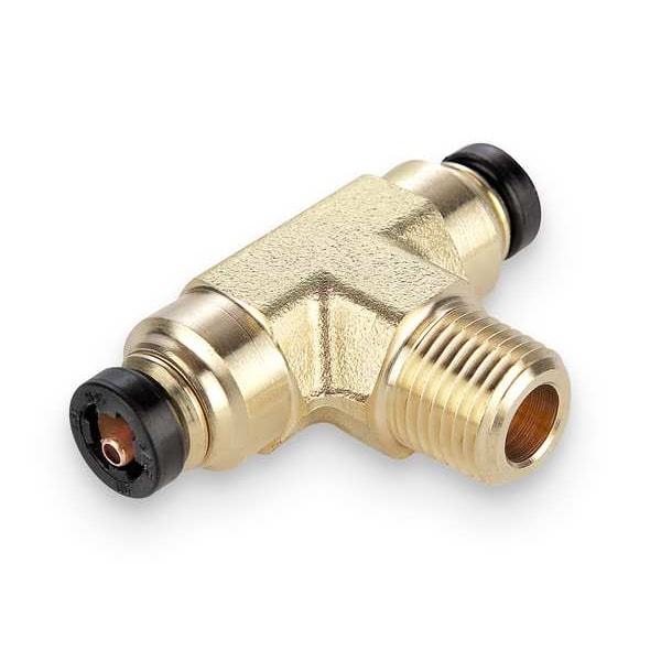 Push-Fit Elbow Fitting, Application Air, Fitting Side A Connection Type Push-to-Connect, Fitting Side B Connection Type MNPT, Fitting Side B Pipe Size 1/8 in, Fitting Side A Tube Outer Diameter 3/16 in, Fitting Material Brass, Fitting Thread Size Not Applicable, Material Grade C36000, Color Gold, Includes Pre-Applied Thread Sealant Pre-Applied Thread Sealant Not Included, Maximum Operating Pressure 250 psi, Maximum Operating Temperature 200 Degrees F, Overall Length 1 3/16 in
