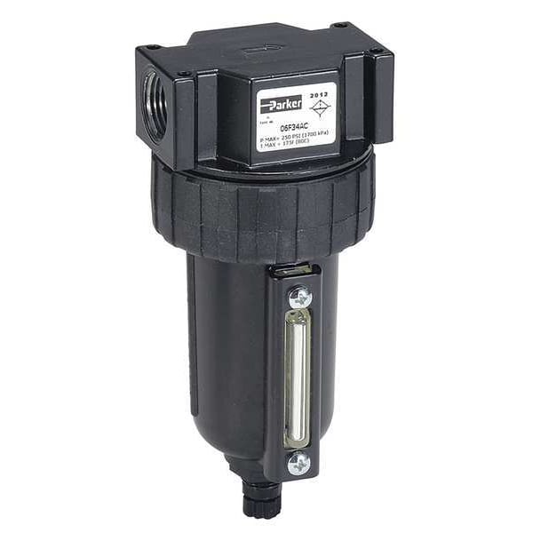 Compressed Air Filter, Filter Type Particulate, Air Inlet Size 3/4 in, Air Inlet Type NPT, Maximum Flow Rate 145 cfm, Maximum Operating Pressure 250 psi, Maximum Operating Temperature 175 Degrees F, Overall Width 3 1/4 in, Overall Height 7 11/16 in, Drain Included Yes, Filter Bowl Material Zinc, Drain Type Manual, Series 07F, Differential Pressure Indicator Included No, Air Outlet Size 3/4 in, Air Outlet Type NPT, Body Material Zinc, Drain Part Compatibility PS512P, Duty Rating Heavy Duty