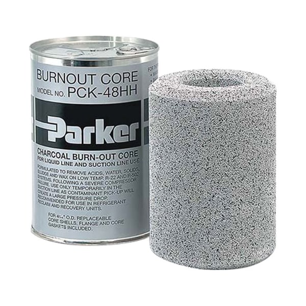 Parker Pck-48Hh Charcoal Burnout Core;48 Cu. In;Formulated With Charcoal To Remove Wax On Low Temperature;System Seven Before Problems Occur.;Pck-48Hh Can Be Used In Either Liquid Or Suction Line;Applications And Also Removes Acids, Water, Solids And;Sludge.;Recommended For Refrigerant Reclaim/Recovery Units.