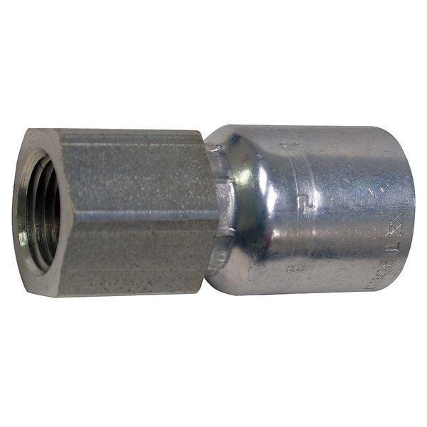 Hydraulic Crimp Fitting, For Hose Dash Size -4, For Use With Hose Series 301LT; 302; 304; 351ST; 351TC; 422; 424; 426; 431; 436; 451TC; 451ST; 471TC; 471ST; 472TC; 482TC; 482ST; 722TC; 881, For Hose I.D. 1/4 in, Thread Size 1/4 In.-18, Fitting Shape Straight, Rigid, Vacuum Rating Not Rated, 7,000 psi, Thread Type NPTF, Hose Fitting A Gender Female, Hose Fitting B Gender Genderless, Hose Fitting A Size 1/4 in, Hose Fitting B Size 1/4 in, Hose Fitting A Connection Type NPTF