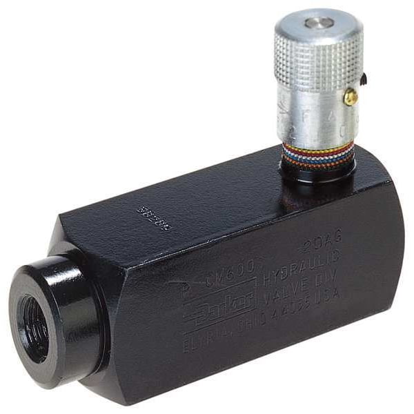 Hydraulic Flow Control Valve, Flow Rate - Maximum 6 gpm, Valve Type Control, Pressure - Maximum 3,000 psi, Body Material Steel, Inlet Connection Type NPT, Outlet Connection Type NPT, Adjustment Method Rotary Knob, Actuation Mechanism Pressure, Inlet Connection Gender Female, Outlet Connection Gender Female, Includes Relief Valve Relief Valve Included, Includes Seals Seals Included, Seal Material Nitrile, Inlet Connection Dash Size 18, Control Direction One-Way, For Media Oil