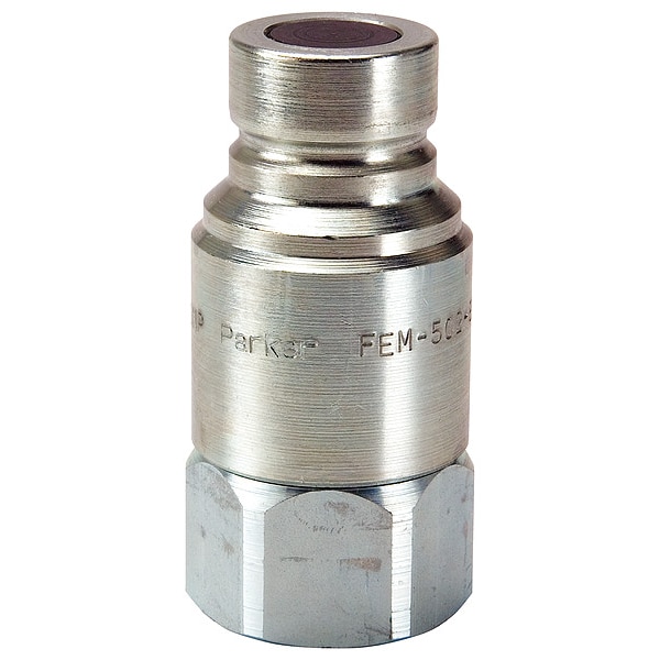 Hydraulic Quick Connect Hose Coupling, Plug, FEM Series, Steel, Coupling Size 1/2 in, Female, Max. Working Pressure @ 70 F 3,625 psi, Max. Flow Rate 45.42 lpm