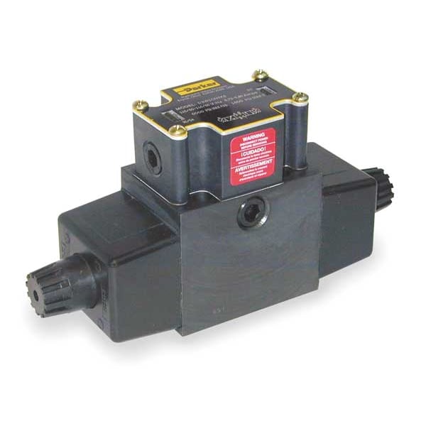 Hydraulic Directional Valve, Flow Rate - Maximum 30 gpm, NFPA Size D05, Number of Positions Three Positions, Pressure - Maximum 5,000 psi, Valve Control Directional Control, Number of Ways Four-Way, Voltage 115V AC, Port Connections Manifold, Center Position Open Center, Series D3W, Overall Height 5.06 in, Standards ISO 4401, NFPA D05, Frequency 50/60 Hz, Inrush Current 3.5 A, Overall Length 9.85 in, Overall Width 2.76 in, Return Mechanism Solenoid, Seal Material Nitrile